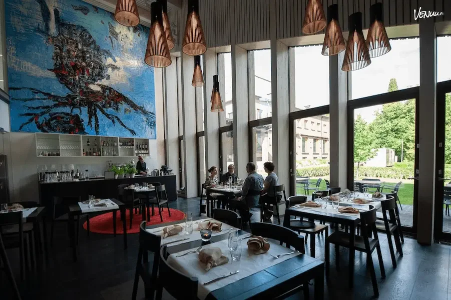 Serlachius-museon ravintolasali tuo industrial-tyylisiin häihin uniikin ja yllättävänkin miljöön, jossa museon taidehistoria ja häiden tunnelma täydentävät toisiaan. Tummanpuhuva sisustus tuo juhlaan ryhtiä, ja suuret ikkunat avaavat näkymän ympäröivään maisemaan sekä päästävät luonnonvaloa ihanasti häätilaan.