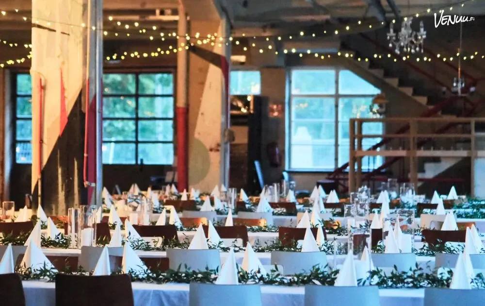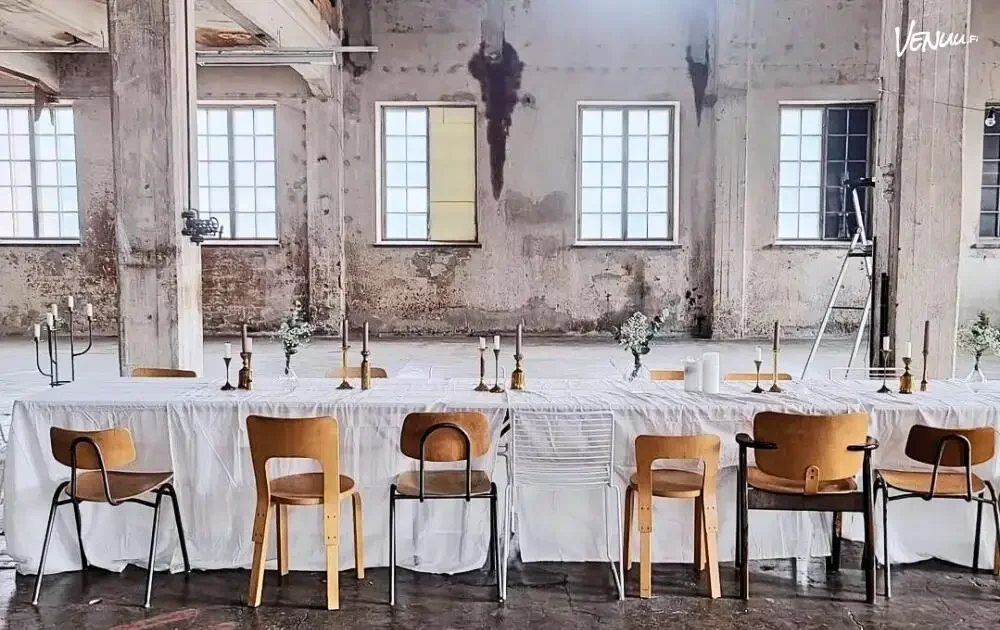 LoFT Galleria tuo esiin alueen teollisen historian tavalla, jossa industrial-häät näyttävät juuri siltä kuin pitääkin. Korkeat ikkunat ja eläväiset pinnat tekevät kokonaisuudesta visuaalisesti vaikuttavan. Pelkistetty häätila korostaa myös kukkakoristeita, valaistusta ja kattausta tavalla, joka tekee juhlapöydistä erityisen näyttäviä.